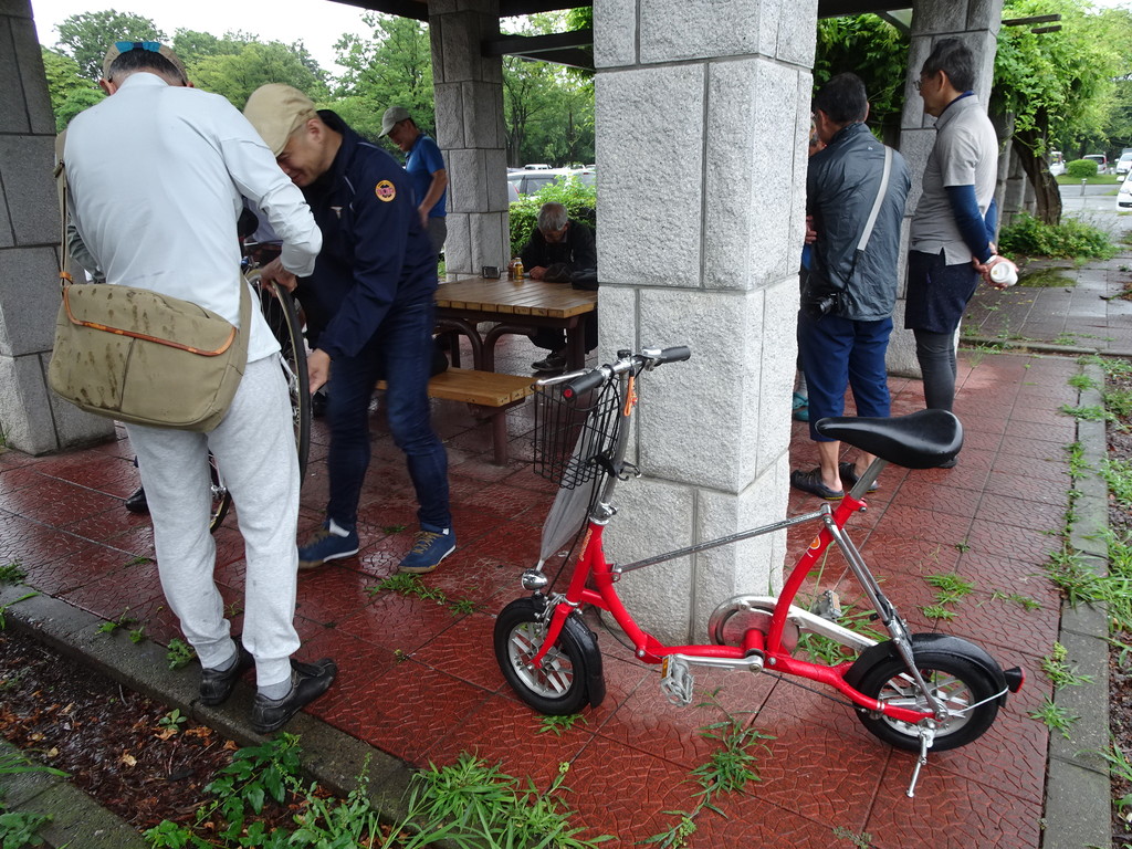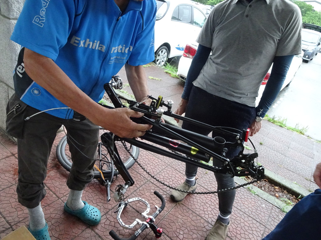 こんなに小さくたためます 車重は8kg台だそうです すごいアイデアですねぇ