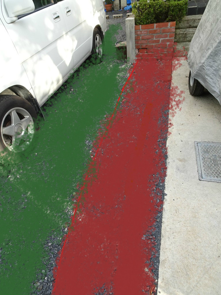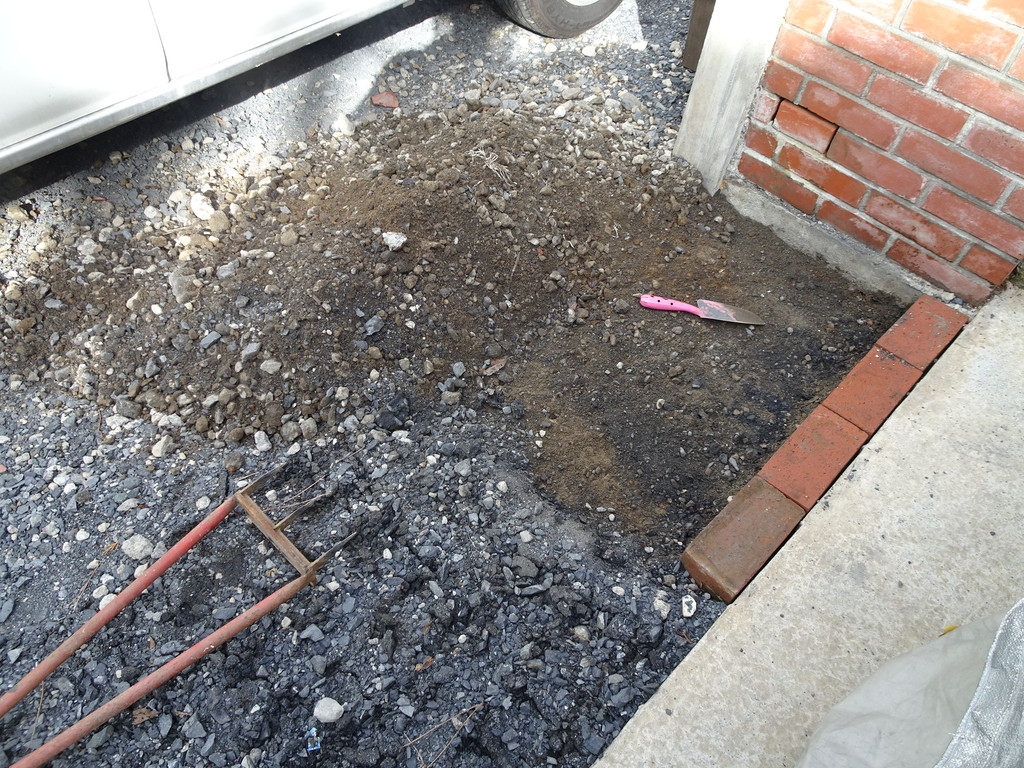 コンクリートのベタ打ちにしようかと思いましたが 家の前が全部コンクリート色ってどうなの?と思い一部レンガを敷く事にしました