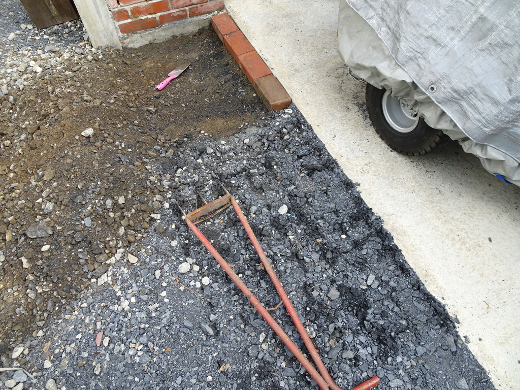 ウチのスコップは業者が間違えて持って帰っちゃったので移植ごてと芝生のスパイクでチマチマ