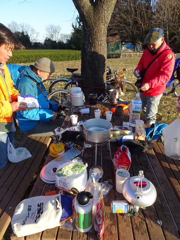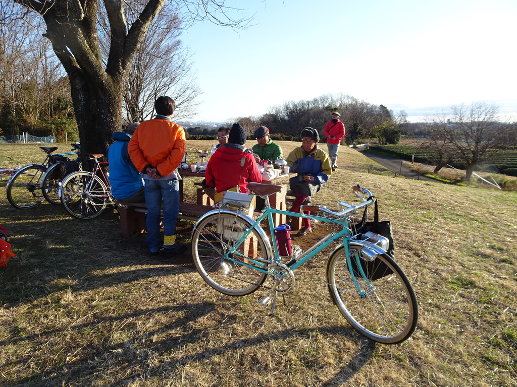 元日の朝 晴れて風無し 友の笑顔と自転車と
