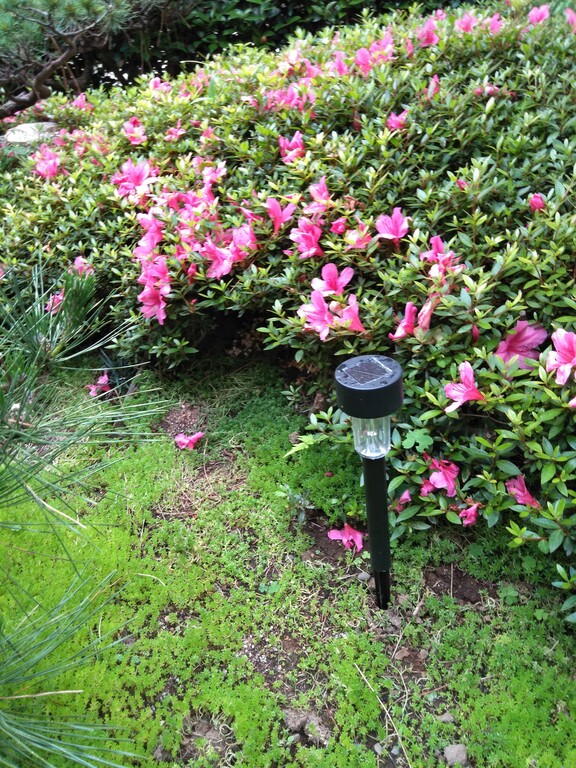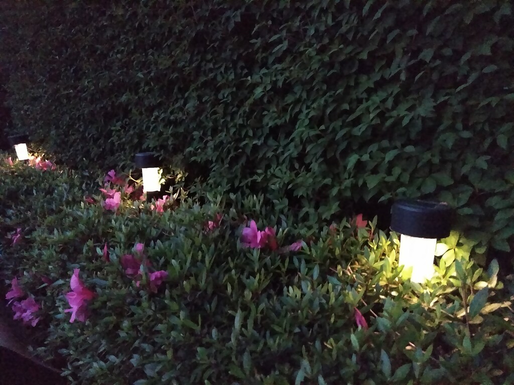 そんなこんなで日が暮れて100均ソーラーガーデンライトに灯が点る