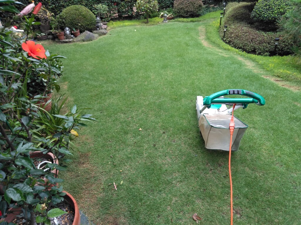 雨降ってないので芝刈りでもしておくか・・