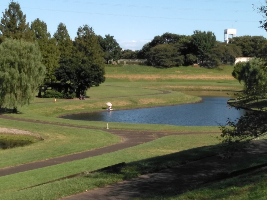池の周りの小路を走って