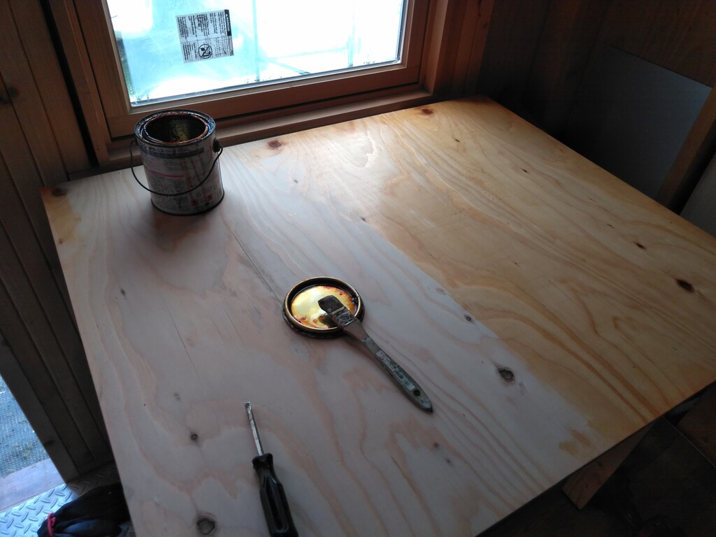 まだ時間があったので 折り畳み窓際テーブルもニス塗装