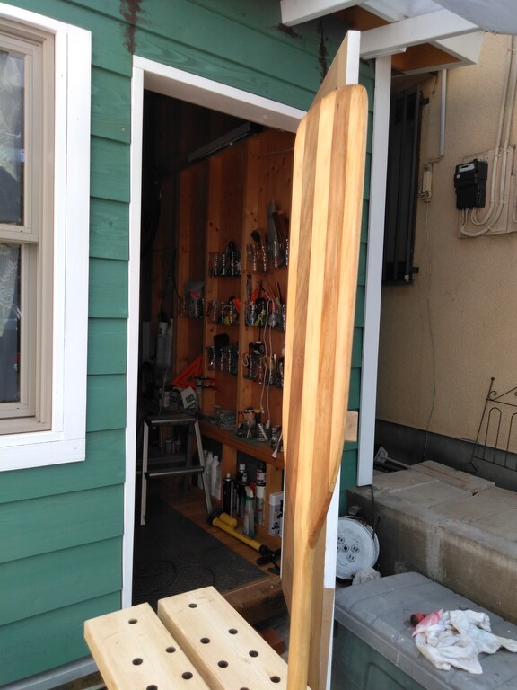 ブイーーーーンサンダーでカヌーのオールを削ります