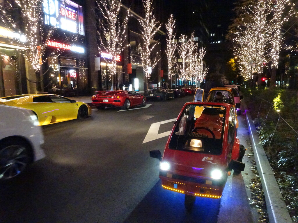 ランボだかマクラレーンだかフェラーリだか良くわかんない平べったいクルマがずらり