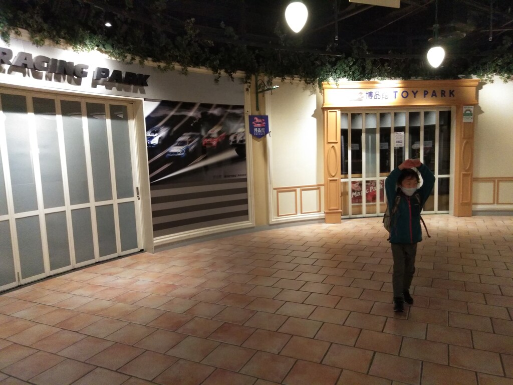 江戸の町並みを模した食堂街はほとんどの店が休業中 かろうじて開いていた店で会食
