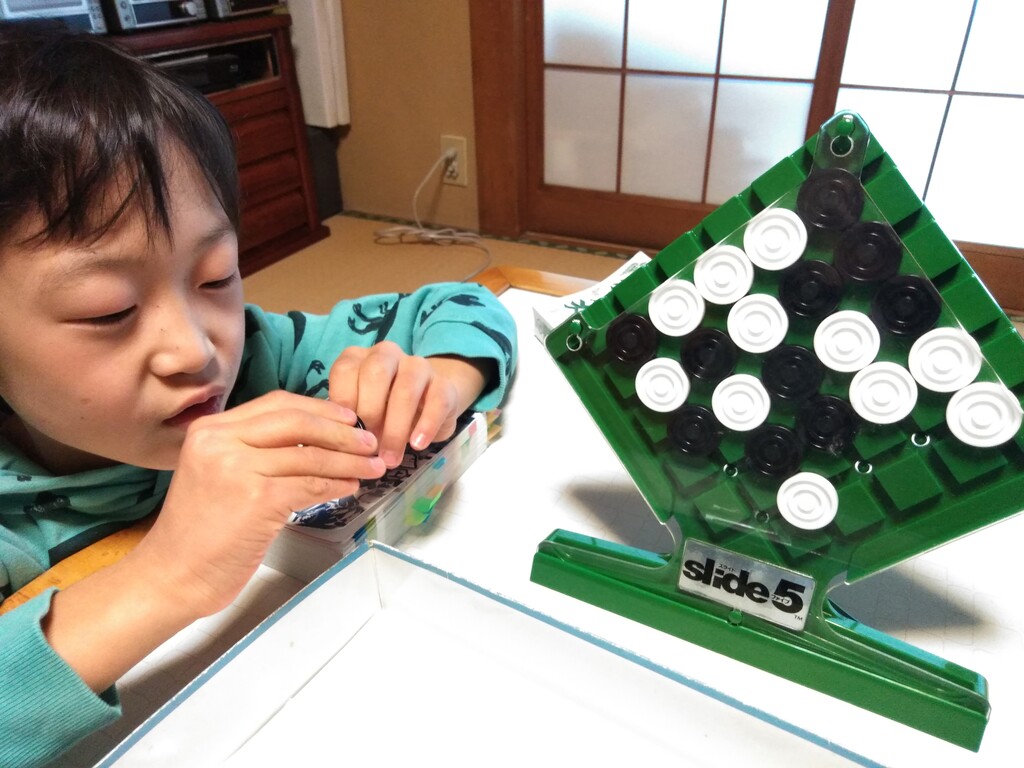 縦横斜めの5目並べ なのですが 押し出し式なのでけっこう面白い 孫に負け越しましたw