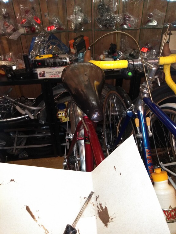 はみ出したシリコンを捨てる前に・・そうだ!サドルにちょっと塗ってみよう!