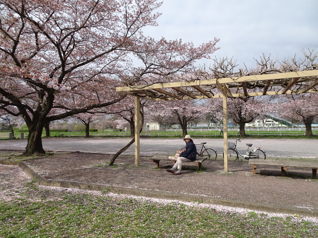 ゲートボール場の藤棚のベンチをお借りしました
