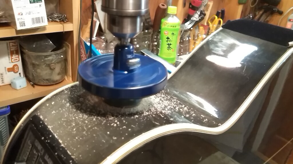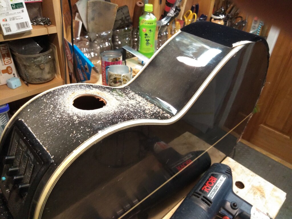 ホールソーでガリガリ・・・ここで問題発生! 内部のコントローラーにドリルが当たってしまいます