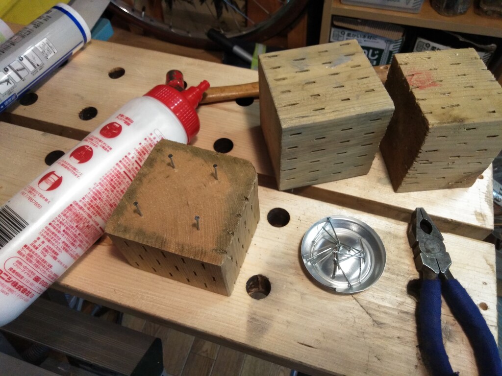釘を打って 釘頭を斜めにカット ボンドを塗って接合させます