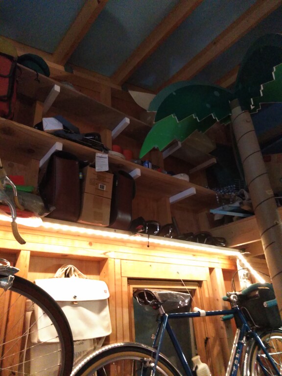 自転車小屋の棚の下にLEDテープを張ってみました