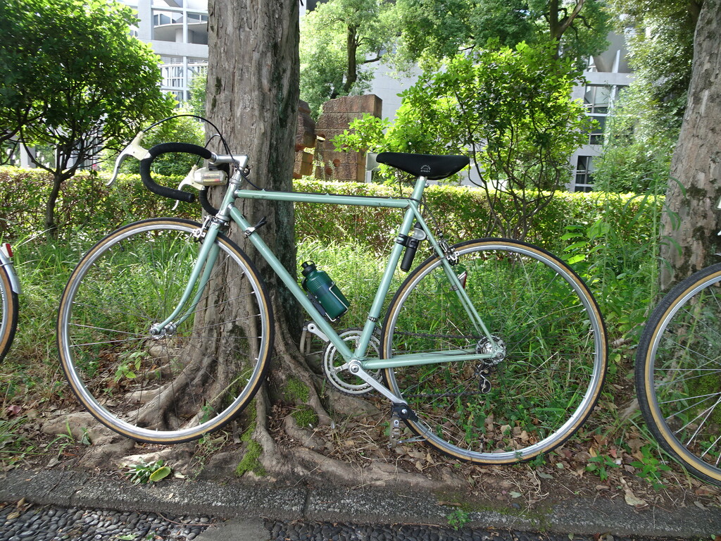 2台ともフレーム、リアのシクロ改造、フロント・プルプル変速機は廣瀬さん作ですが、ステム、ボトルゲージ、組付けは岡田氏です。