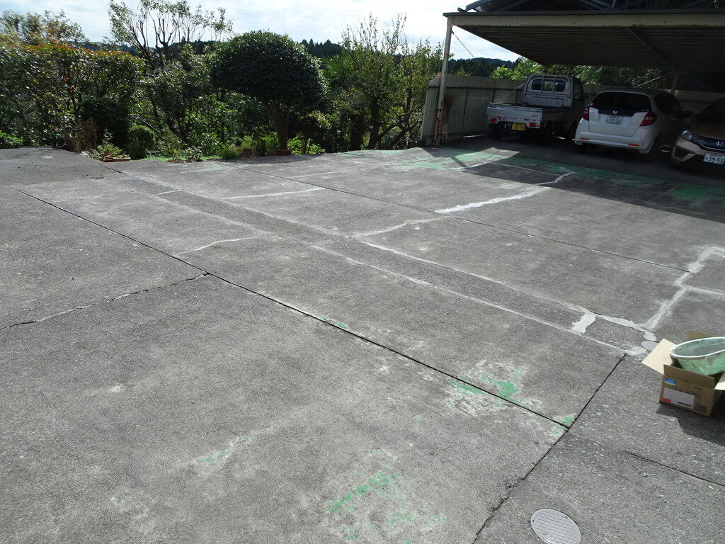 そしてひび割れた所を高圧洗浄機で掃除しました