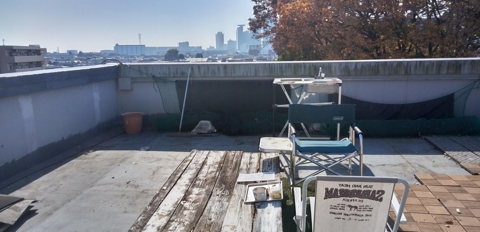 二仕事終わって屋上でティータイム 今回のギャラはうな重!w