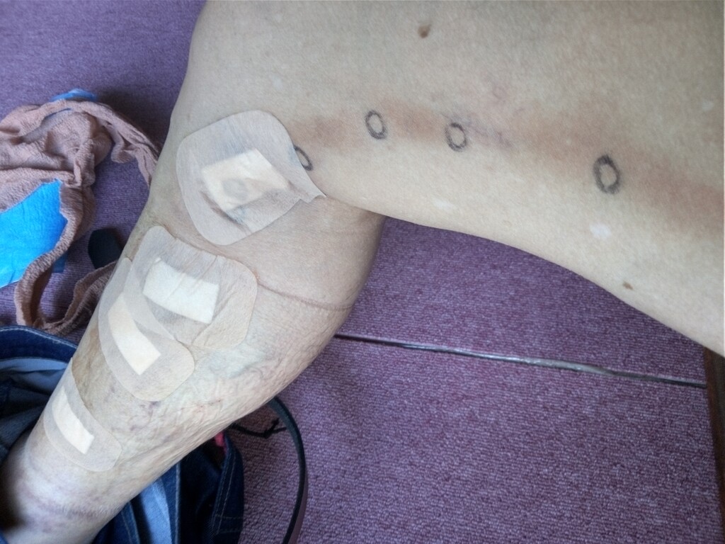 静脈の中に接着剤をコーキングみたいにして塞ぐやり方 足は穴だらけw