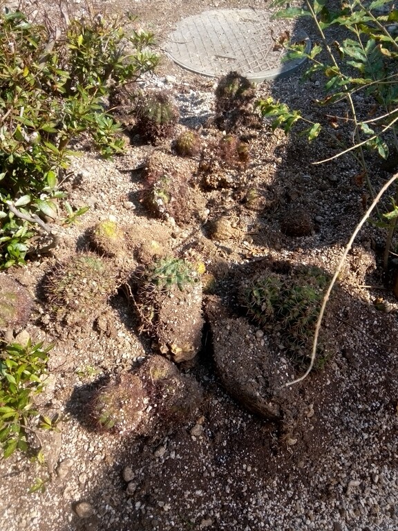 先日の雨で燐家の庭の砂山が崩れて 捨てられたと思っていたサボテンが顔を出しました