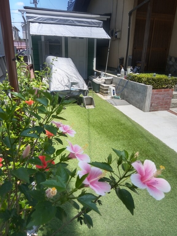 軒下の植木棚に並んでいたサボテンはさすがに水をあげなくても大丈夫だな・・と思っていたら