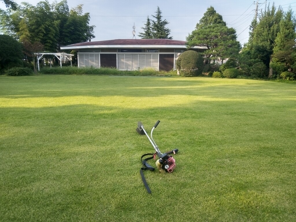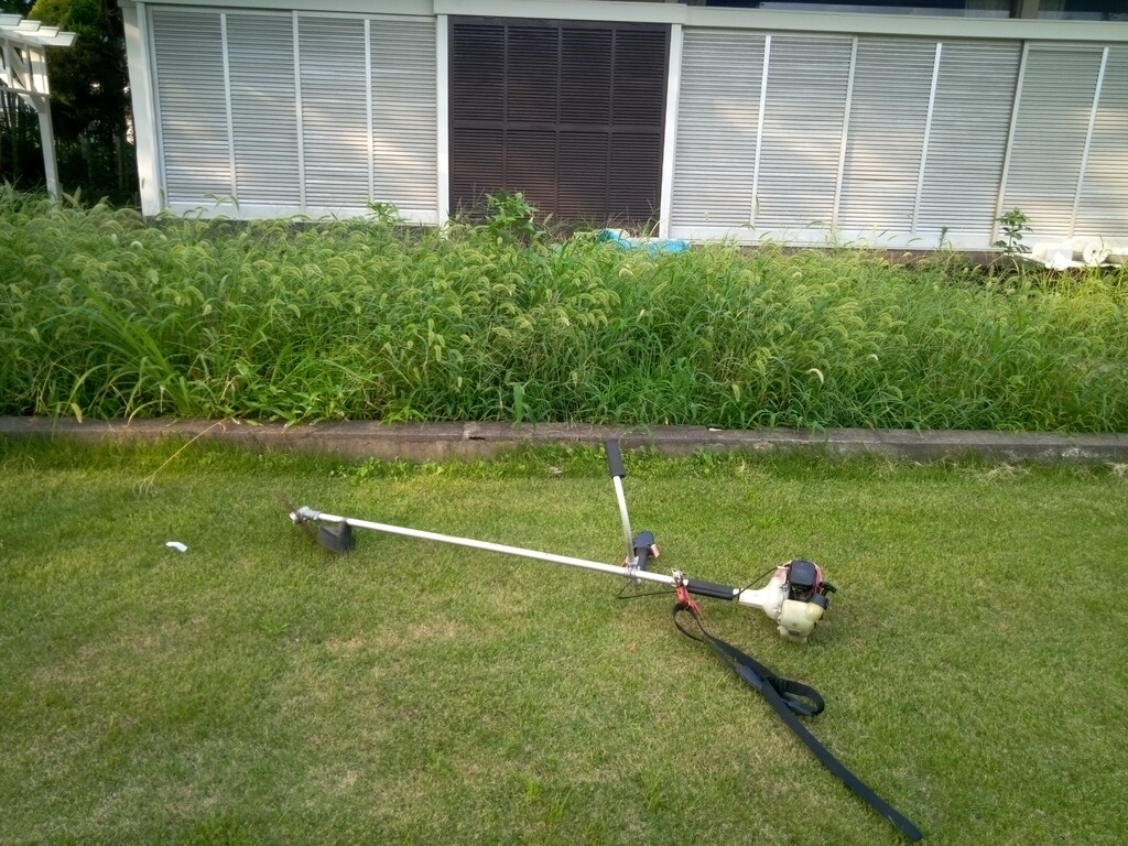 刈り払い機で雑草刈りをします