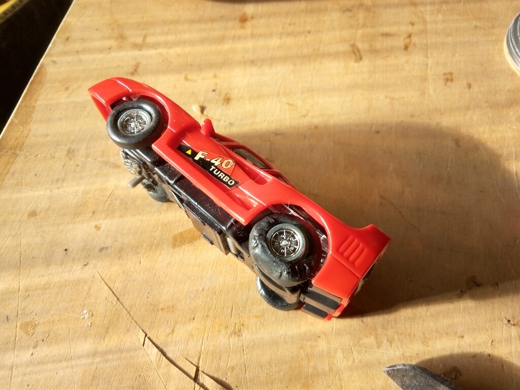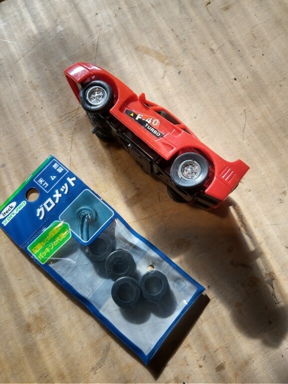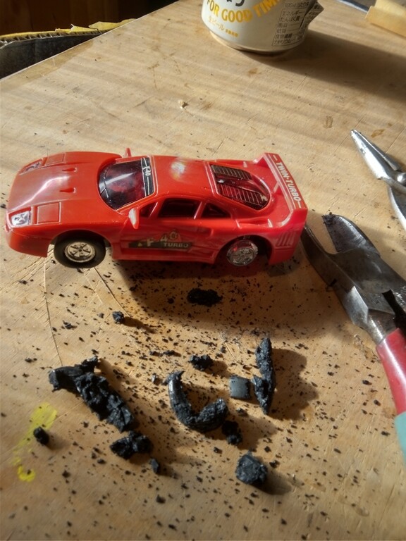 風をひいて正月に来られなかった孫たちが 今度の週末に来ると言うので納戸からレーシングカーを出して来ましたが あちゃー! パンク・・というか加水分解で変形硬化しちゃってます