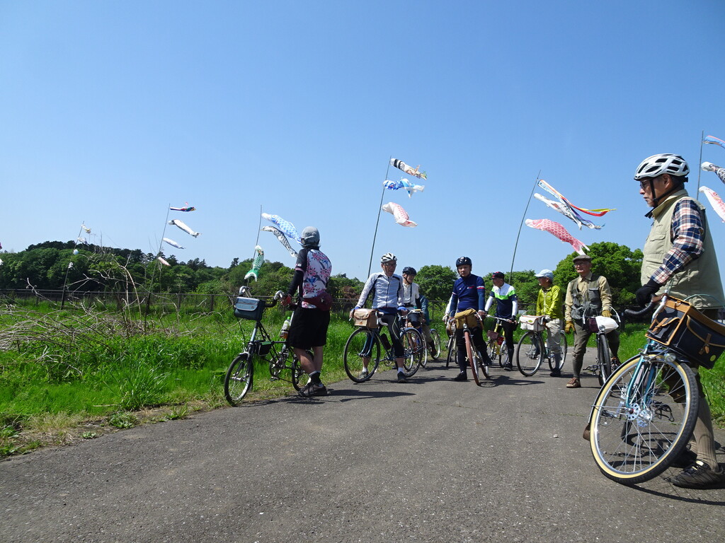 鯉のぼりの群れが気持ち良さそうに泳いでいます