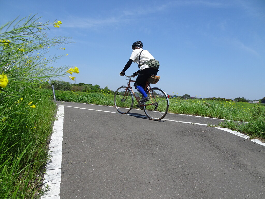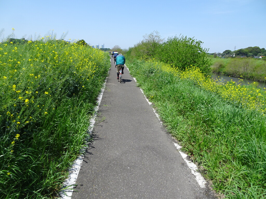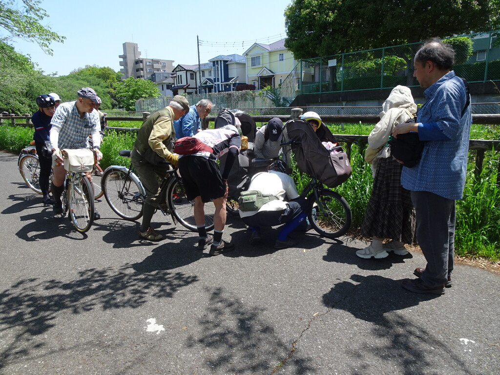 見沼代用水西縁を走っていたら 何やらトラブル中の電動アシストママサイに遭遇