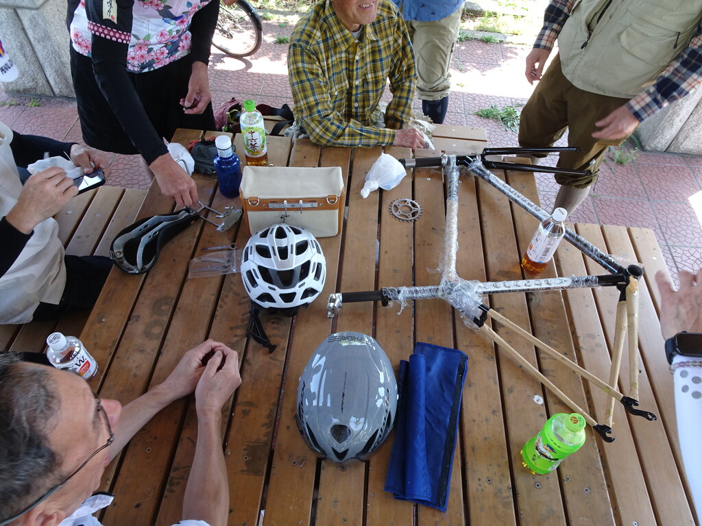 子供2人とスーパーの食材を積んで走っていたら チェンリング付近に紐を巻き込んで動けなくなっていた様です