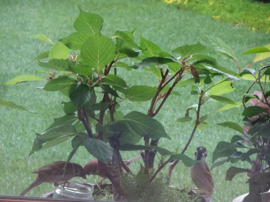 朝 雨戸を開けるとスズメが舞い降りて来ます