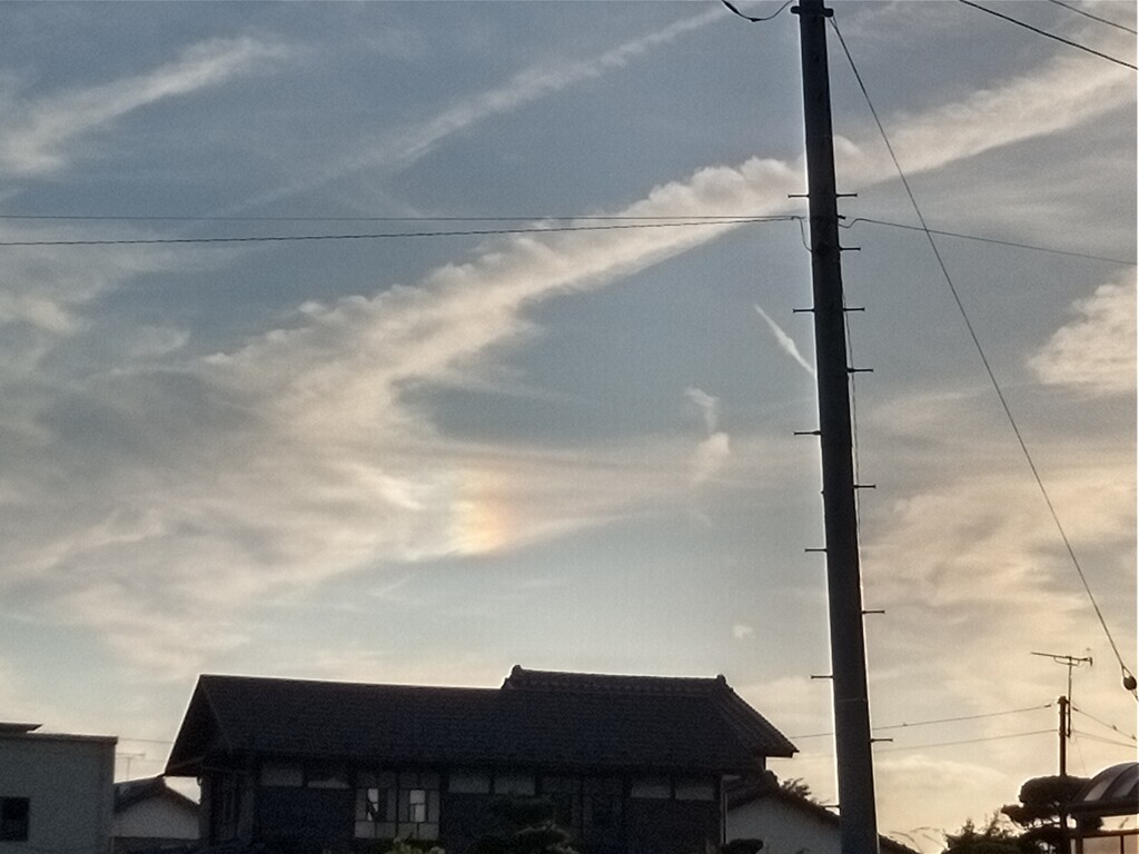 真ん中の雲に彩雲が・・・吉兆か?