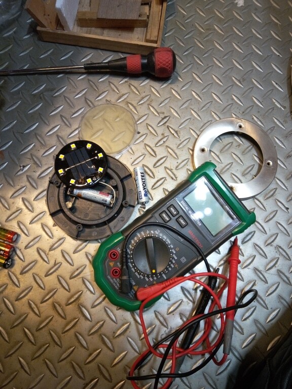 夕方 ソーラーLEDライトの修理 バッテリーを取り替えて 劣化したレンズカバーを取り替えました