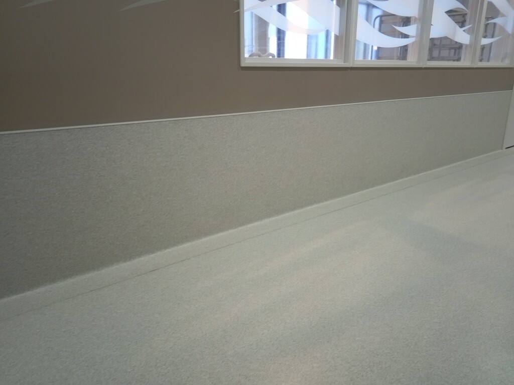 廊下は 床から腰板まで床材が張ってあります 巾木無しで汚れにくくなっています