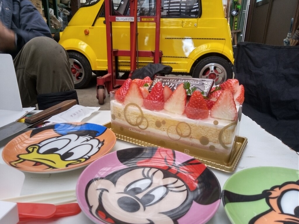 ケーキを買って来ました なるべく路面状況の良い道を選んで走って来たので崩れずにセーフ!