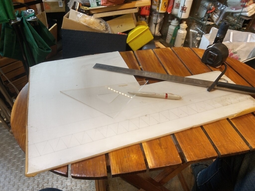 底辺2.5cm・45度で作りましたが 一辺3cm60度の正三角形が良いらしいです