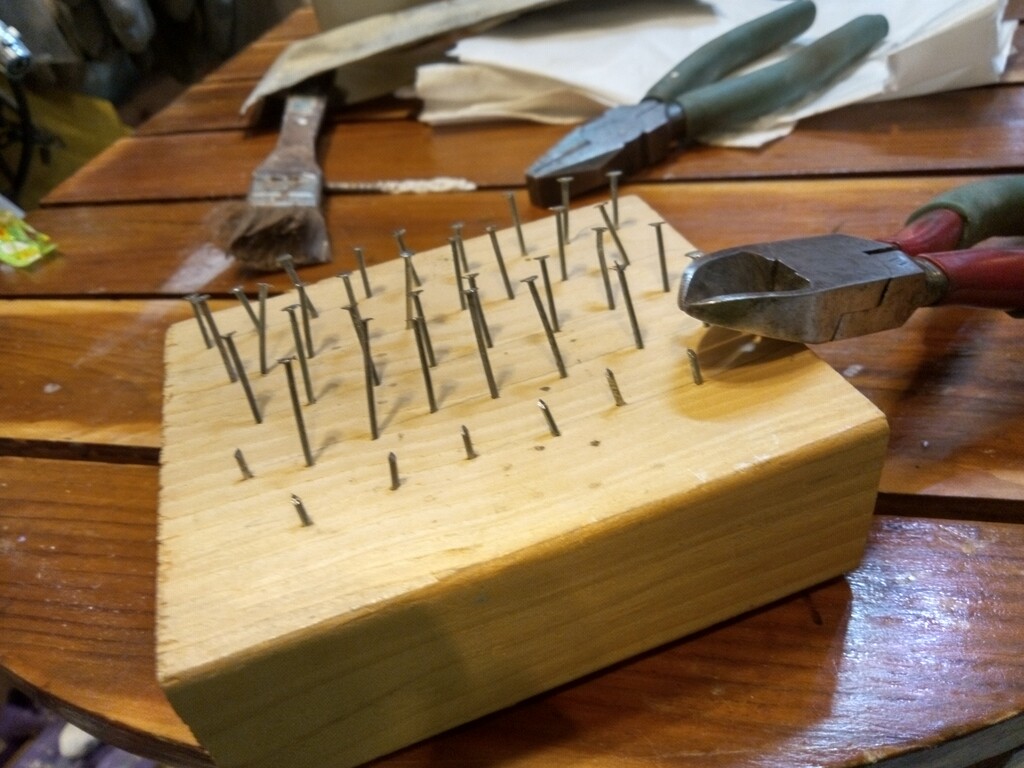 小さい釘を打ってペンチで短く切ります