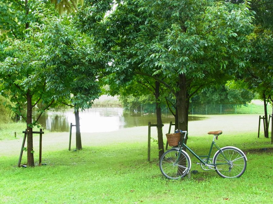 水たまりを突っ切って公園の緑を見て渋滞中のクルマを30台位追い抜いて出勤するのがささやかな楽しみ