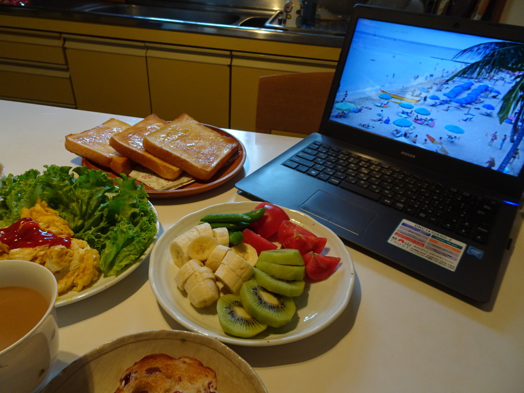 コナコーヒーを淹れてくれたのでPCを開けSEE HAWAII LIVEで雰囲気だけラナイで朝食