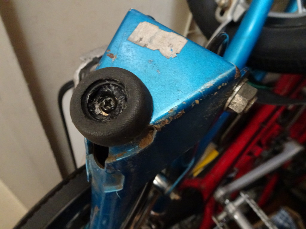 自転車部屋の「ゴム類」の引き出しにあった丸いゴムを付けてみました