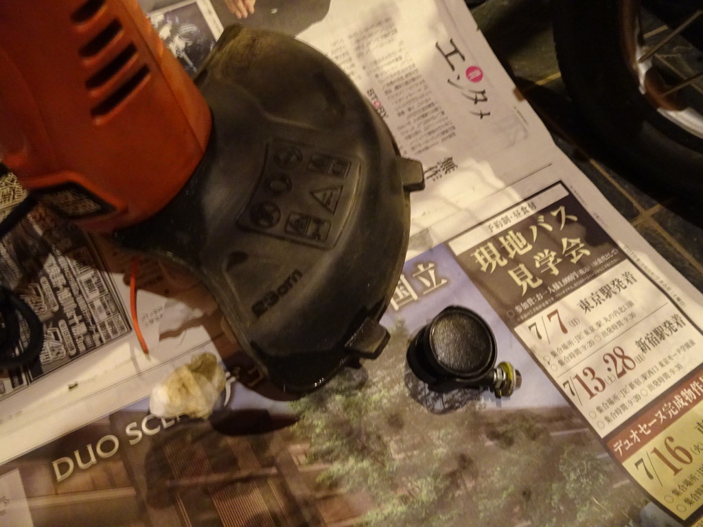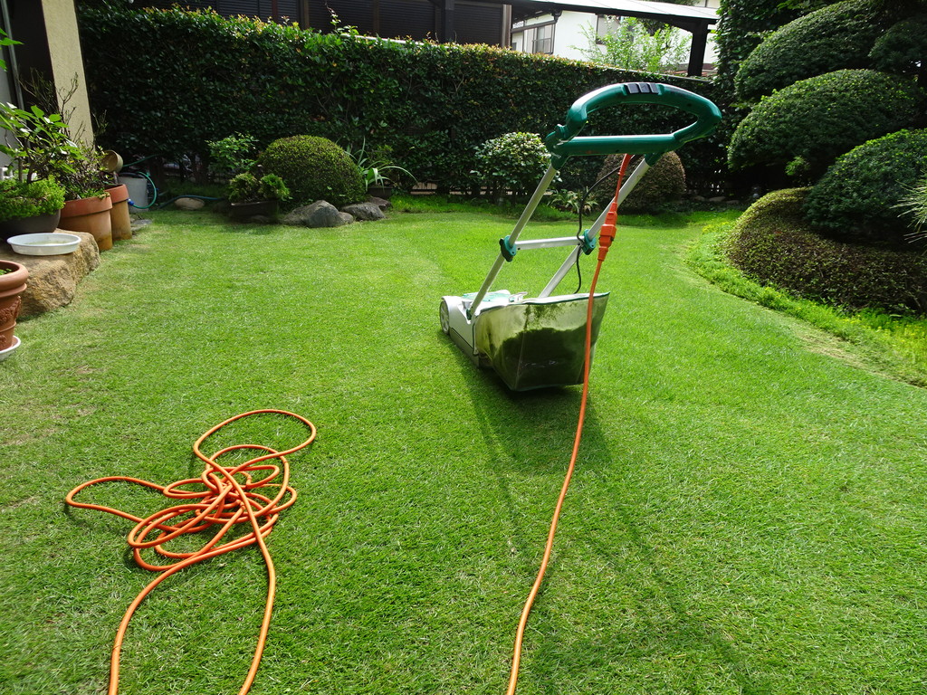 芝刈り機のコードがまとわりついてどうもやりにくい