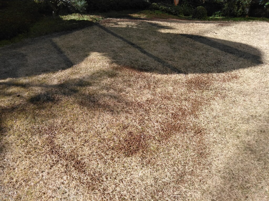 亡父が盆栽用に買ってあった赤玉土があったので 目土として芝生に撒きました