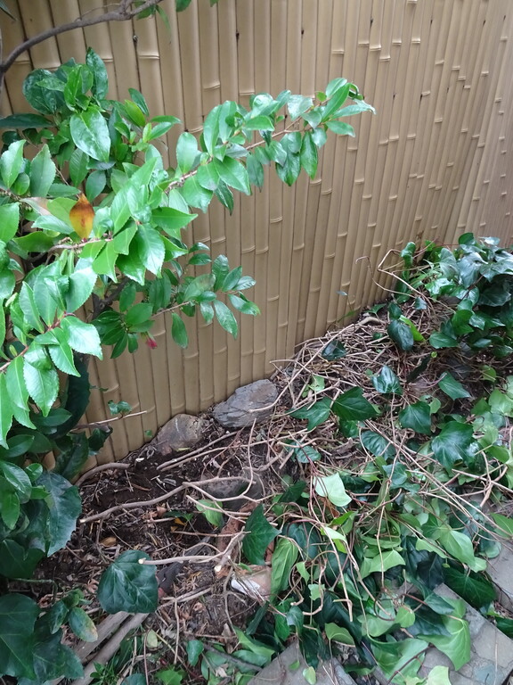 ミニカーに被せてあるシートに骨を入れてサッと出撃出来る様にしようと思って 風呂の出窓下に仕舞ってあったイレクターパイプを引き出そうとしたら 坪庭のボサボサが気になって刈り始めちゃいました