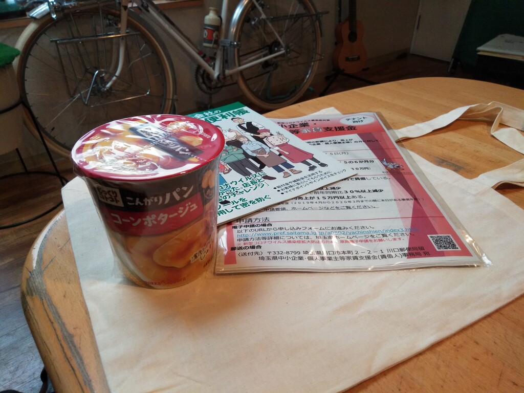 お礼を言って帰ろうとしたら 「コレお持ちください」と 布袋に入ったリーフレットとなぜかポタージュスープを渡されました