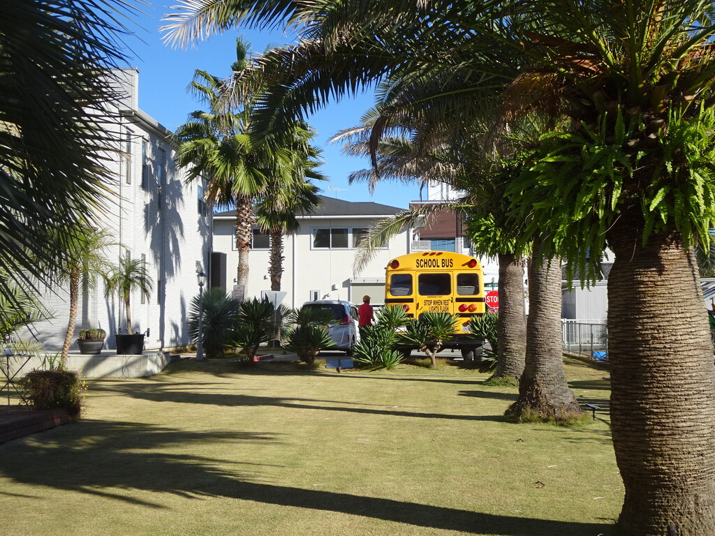 荒サイフリマのあとイトコのBASEに届け物に寄ったら留守・・・と思ったら黄色いバスがブォーンと戻って来ました