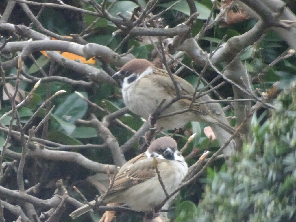 すずめも冬支度 膨れてふくら雀になってます ダウン着たオッサンみたいなカンジw