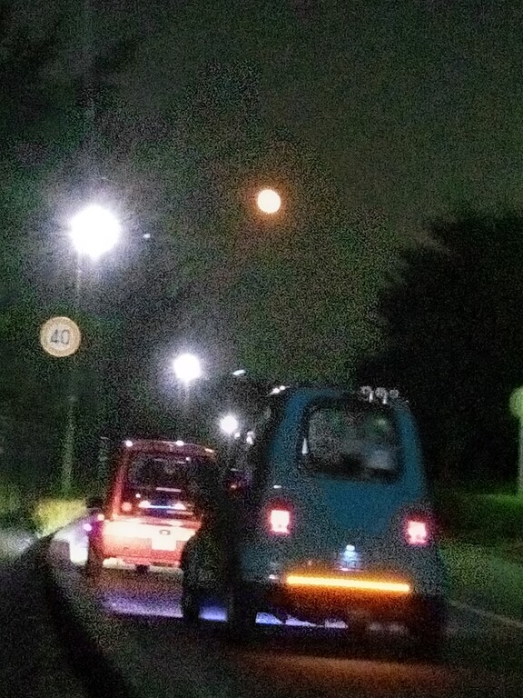走り出したら前方に満月がキレイ 思わず停車してパチリパチリ