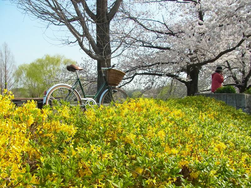 でも今日は違う自転車 パターソンズハウスのミニで桜を見に w