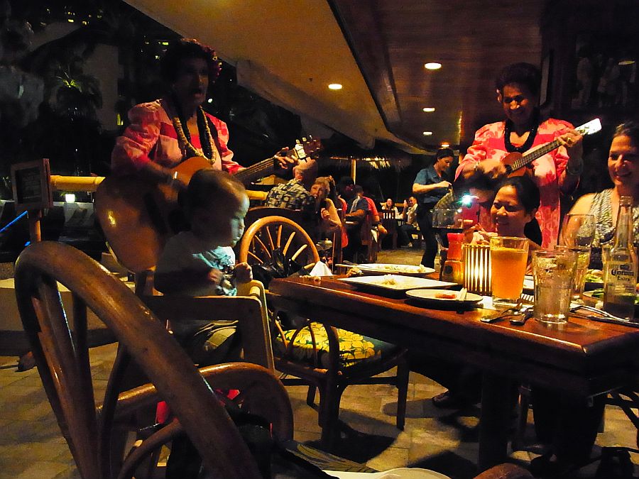 隣のテーブルの赤ちゃんが生演奏に合わせて踊っていますw 大うけ
