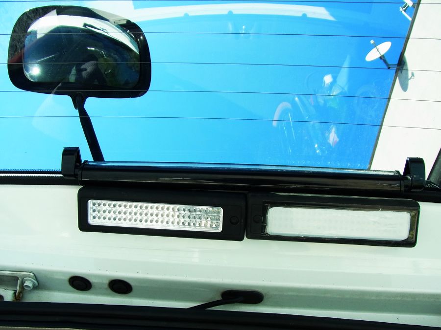 テールゲートに磁石でついている100LEDライトなのですが 直視すると網膜に残像が焼付くので光が拡散する様にスーパーのレジ袋を貼ってみました(右側)
