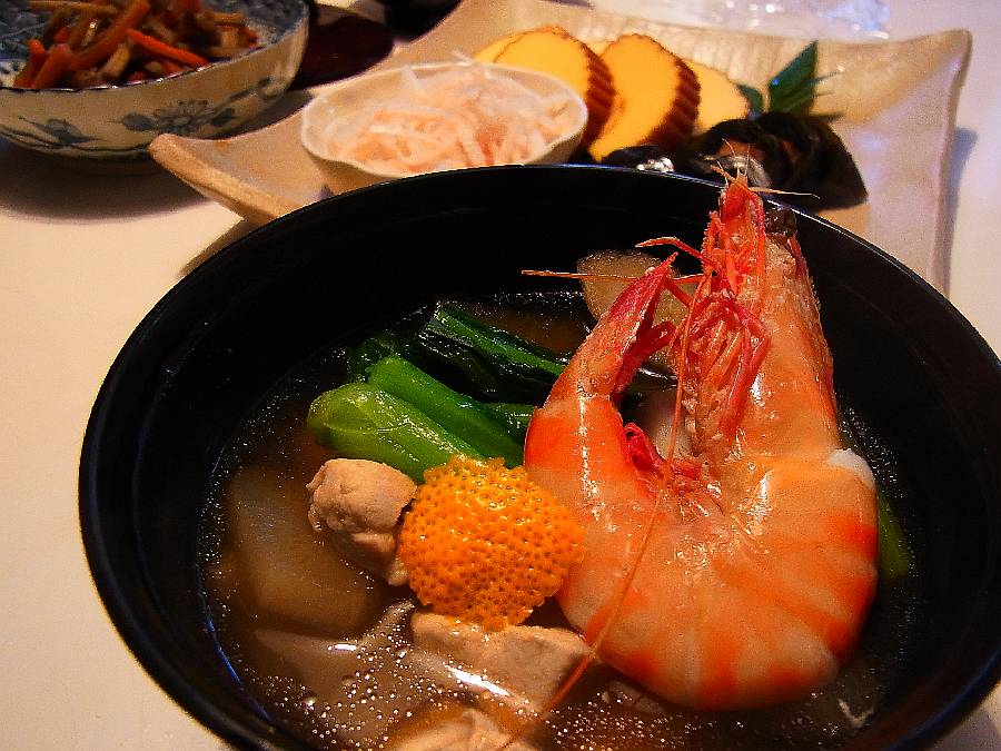 家に9時半に戻ると丁度お雑煮タイム おせちは喪中なので無し