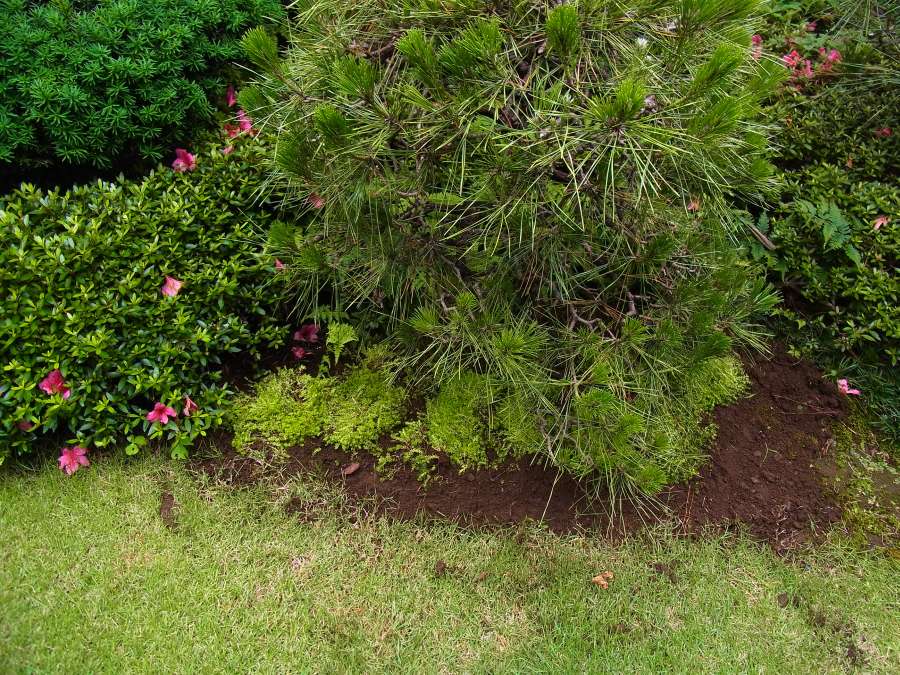 土がムキ出しになっているこの部分に植えます 以前植えた苔は結局あまり定着しませんでした